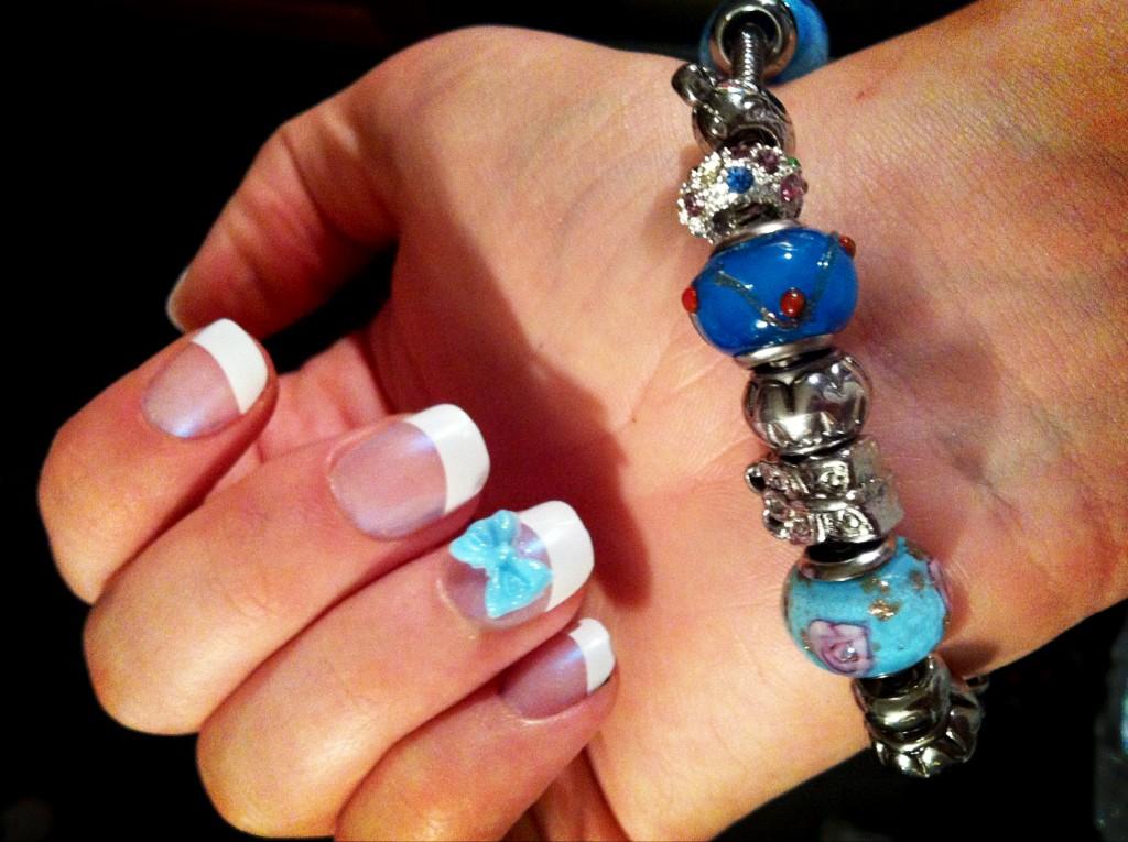 I bought blue bows to stick onto my nails, it is £3 for ten and they come in a nail polish bottle. Postage is free when you spend over £5, (I bought bows as a present as well) which is great!